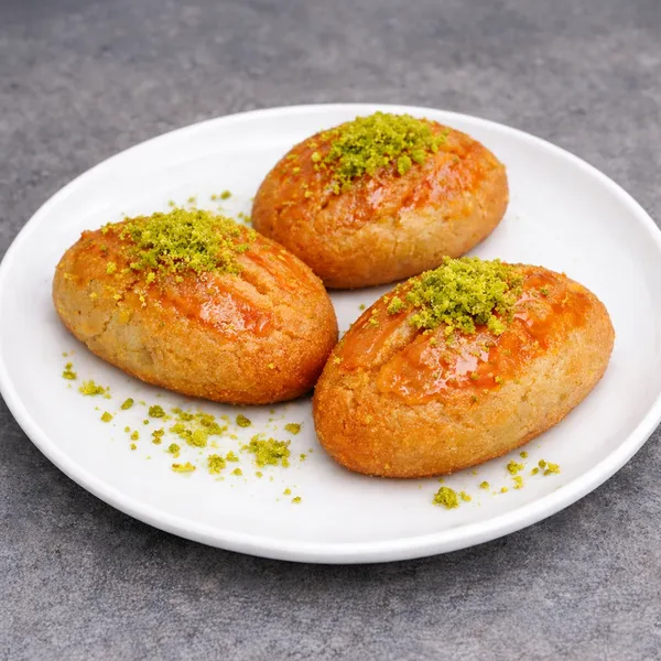 구운 직후 시럽을 붓고 피스타치오 가루를 올려 내는 경우가 많습니다.
